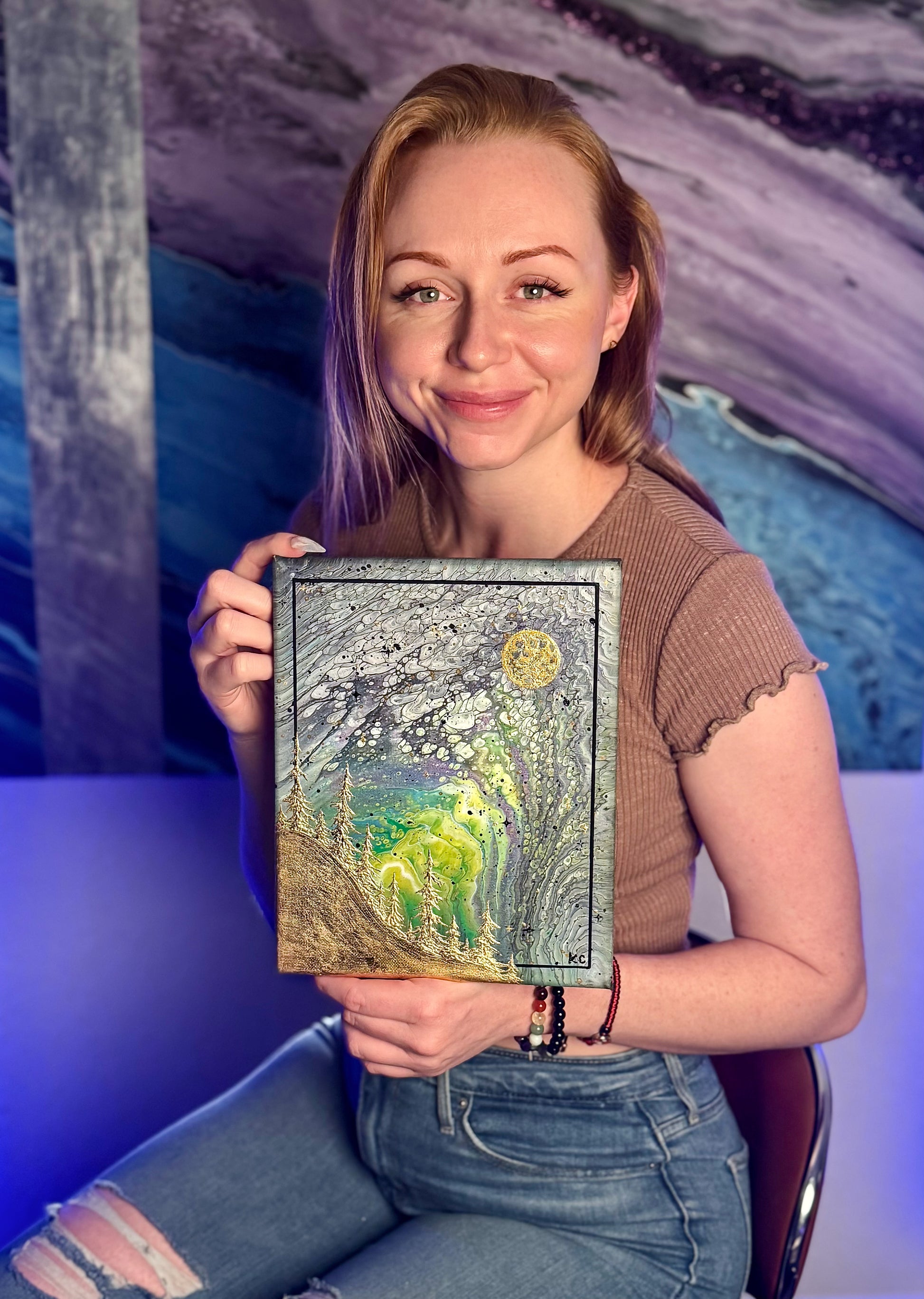 “Phantom Pines” is my ode to what lingers unseen. Grief, resilience, memory, and spirit — all present, though often invisible. When I painted this, I was sitting with the ghosts of my own life: the versions of me I thought I lost, the seasons that seemed never ending and the ones that seemed to vanish. The love and passion still exists.