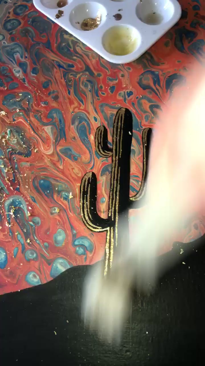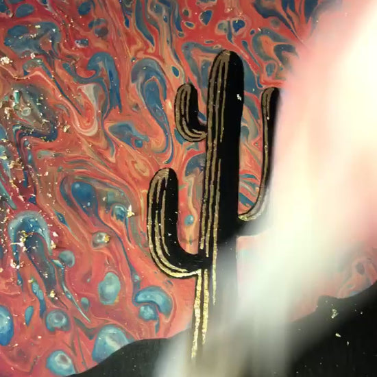 This piece captures the spirit of becoming, the sense of awe that shaped my earliest years as an artist. Here, the desert is not barren but breathing; its light moves like memory, its guardians rooted in silence and endurance. Every pour, every vein of copper and blue, speaks of transformation, the moment I began to see the Sonoran not just as home, but as a mirror of my own awakening.